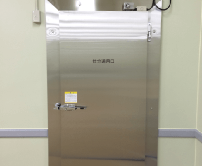 製薬工場のクリーンルームに設置した事例です。厳密な差圧管理が必要なため、気密性の高いドアを探していたところ、サンワイズが探し当てられました。気密性が高まることで空調のロスが減り、空調コストの削減もできると、採用しています。